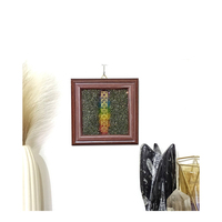 Impresionante hermosa numinosidad Mandala arte marco de madera piedra preciosa pirita Placa de polvo para uso de la decoración del hogar India